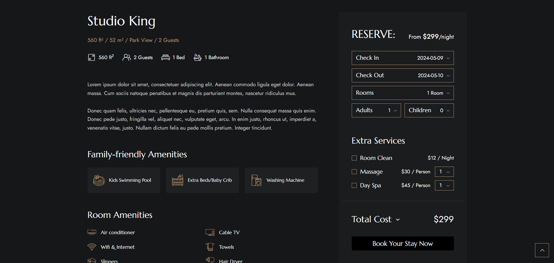 Permite clienților să își facă rezervare și să plătească direct online prin site-ul tău. Caracteristici personalizate, servicii extra, calculare cost.