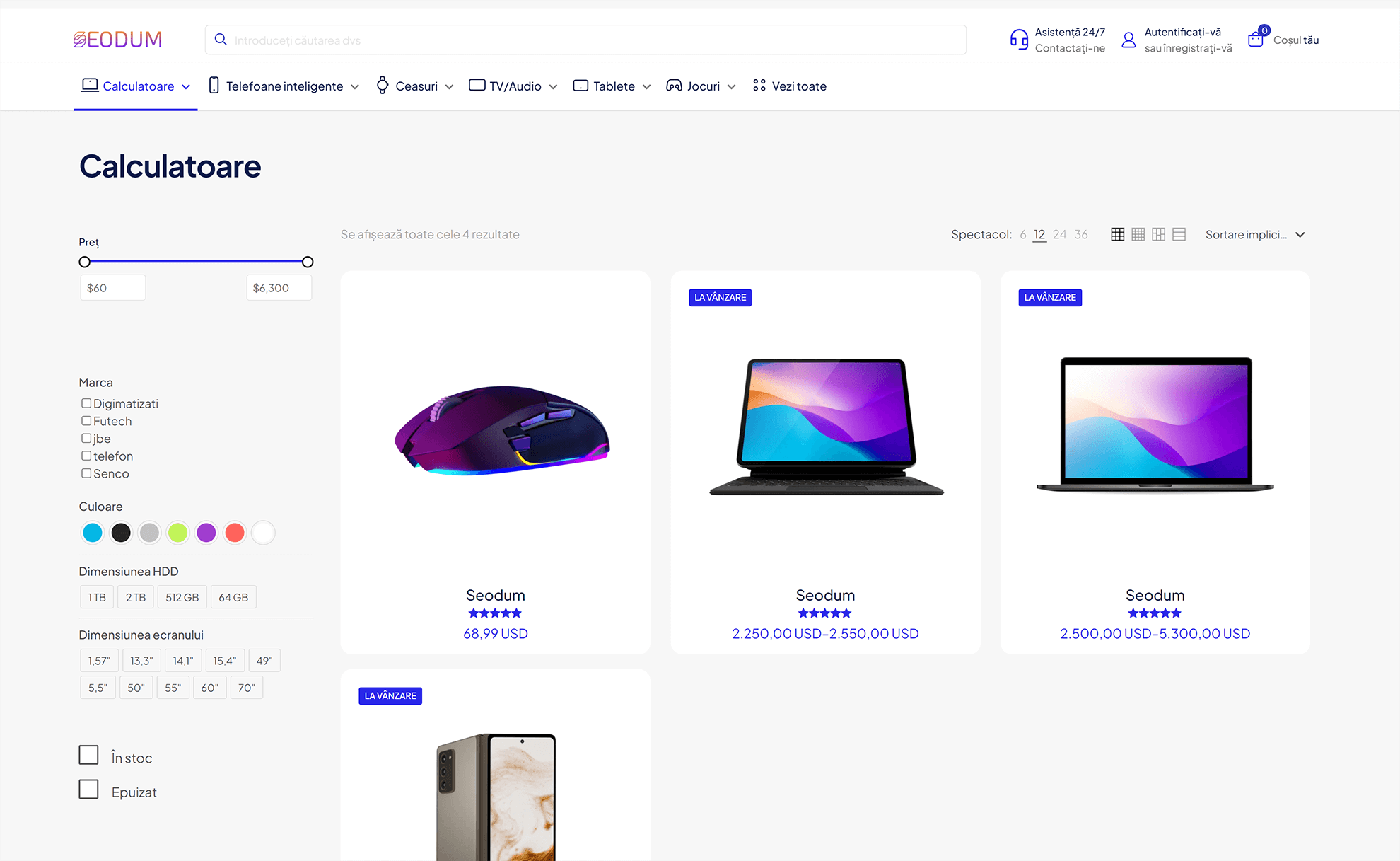 Site-uri de comerț electronic care permit utilizatorilor să cumpere și să vândă produse sau servicii online, oferind funcționalități precum coș de cumpărături, plată securizată și gestionarea comenzilor.